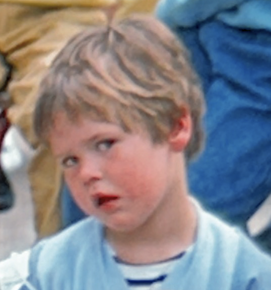 The image from the Kodak Scanza wasn’t as bad as I expected, but it suffers from soft focus, blotchy areas, and lots of visible compression artifacts that reduce the image quality. This image also has an obvious blue color cast that’s not flattering on skin tones.
